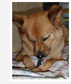 おかあさんがコングにおいしいものを詰め始めると、「あ~お出かけなのかな」とちょっとさびしいけど、でも目の前のコングがすっごくいいにおいだから、さびしいのも忘れるんだ。それに、食べて寝てたら、おかあさん帰ってくるってわかってるしね。へいちゃらだよ!