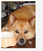 骨やガムなど甚だしく執着するものは、飼い主さんが手で持ったまま食べさせます。あとで獣医さんにうかがったことですが、骨やガムなどは飼い主さんの手で固定して食べるほうが歯磨き効果も倍増するとか。